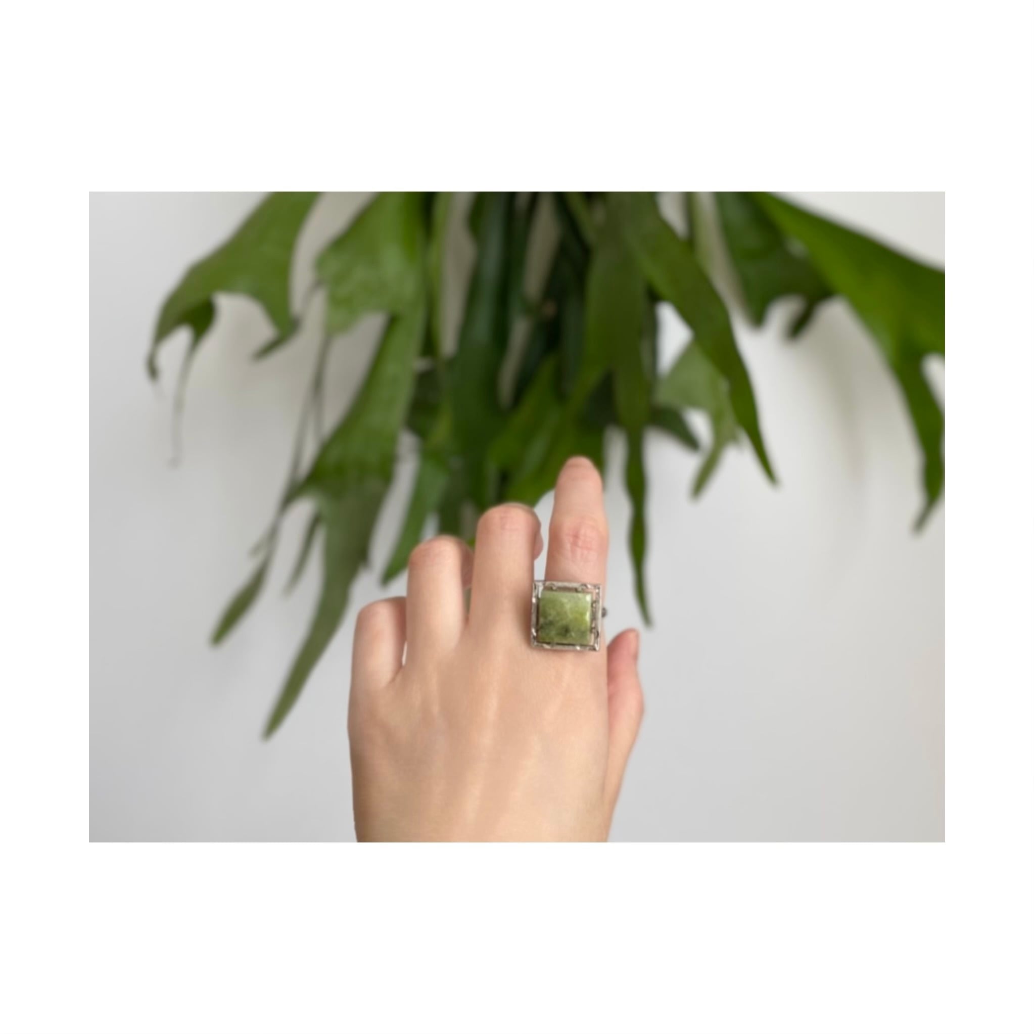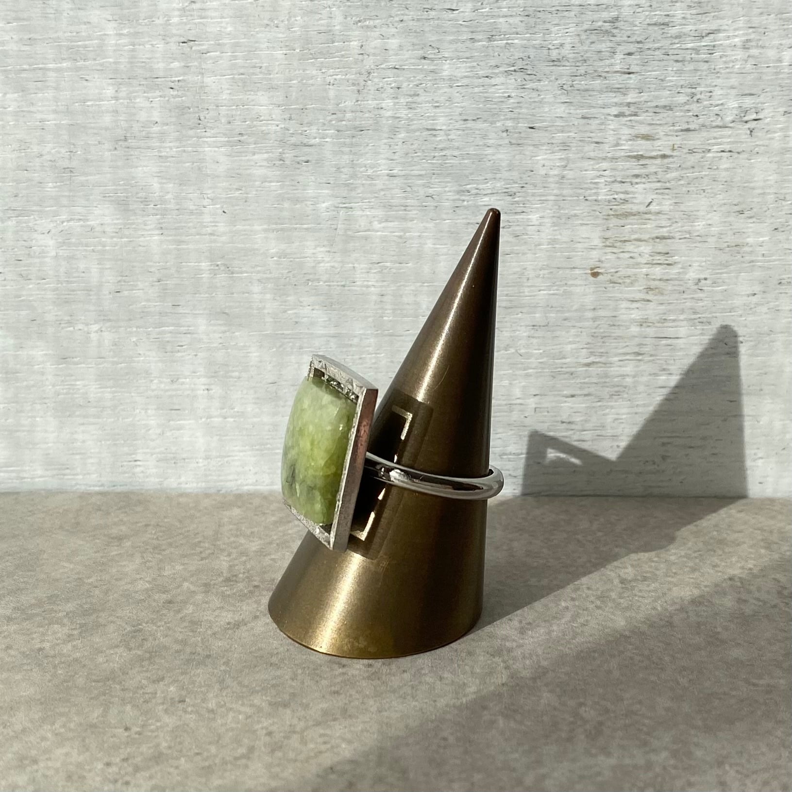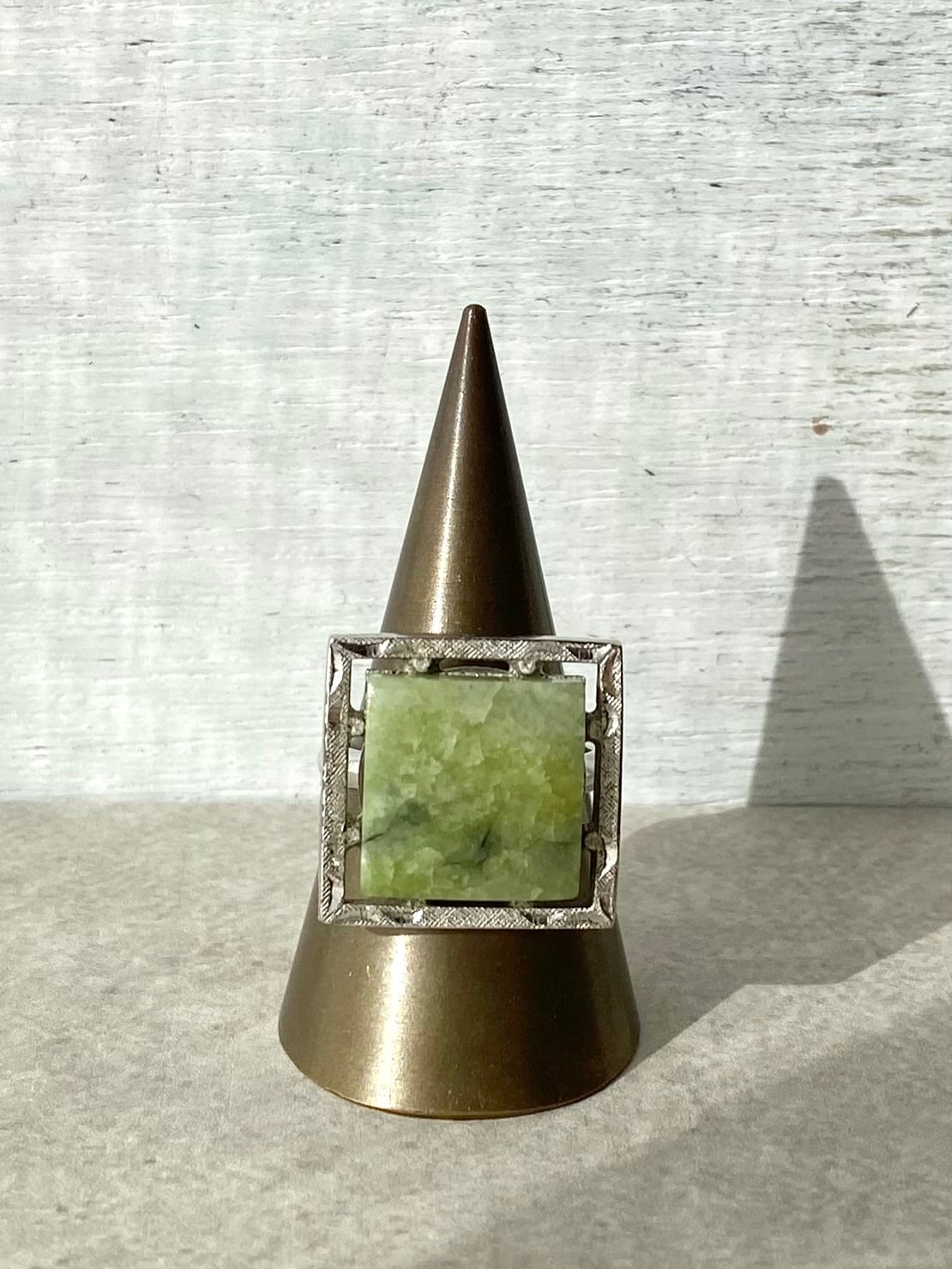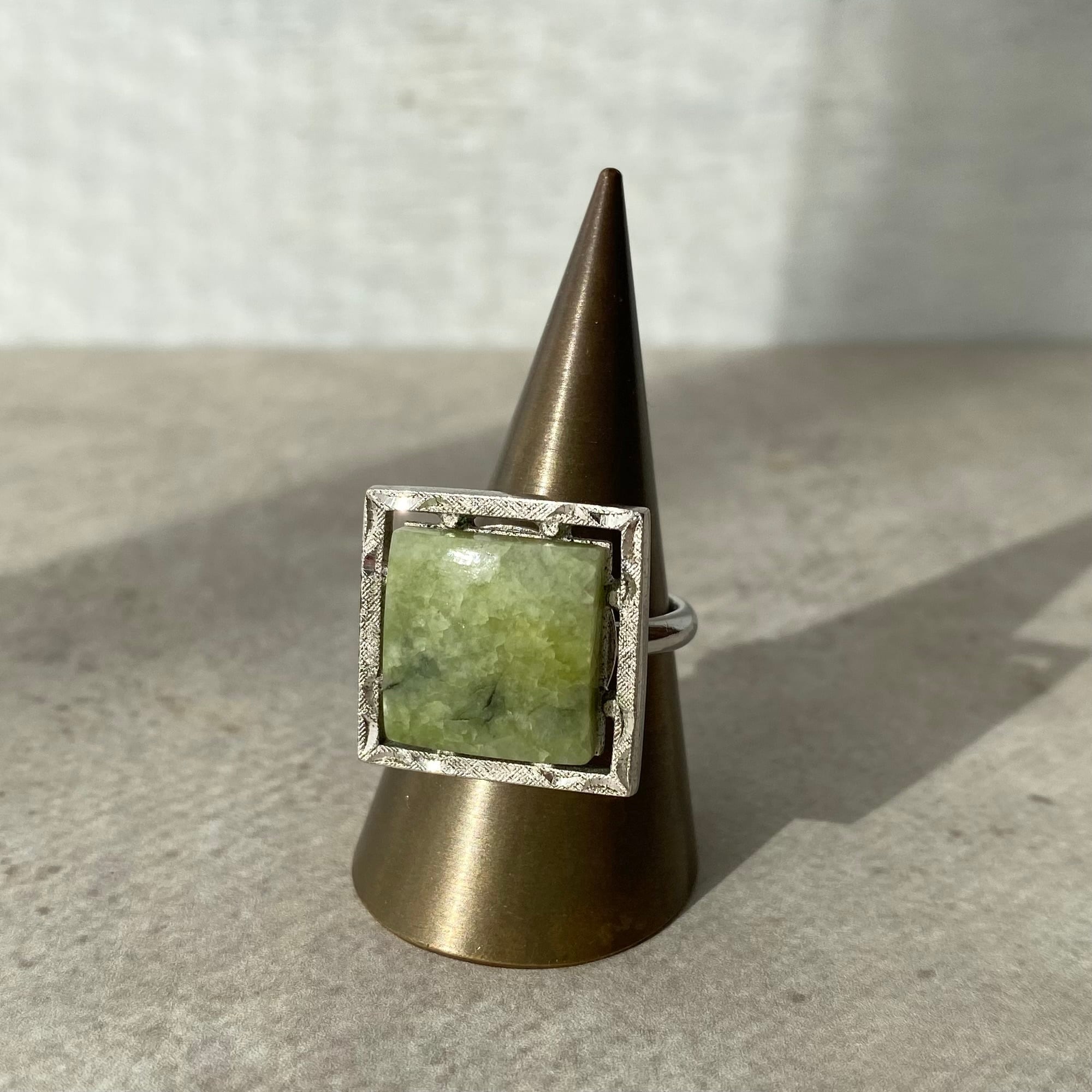 Upcycled green jade square design silver tone ring アップサイクル アクセサリー 天然石 グリーン ジェード スクエア デザイン シルバー リング