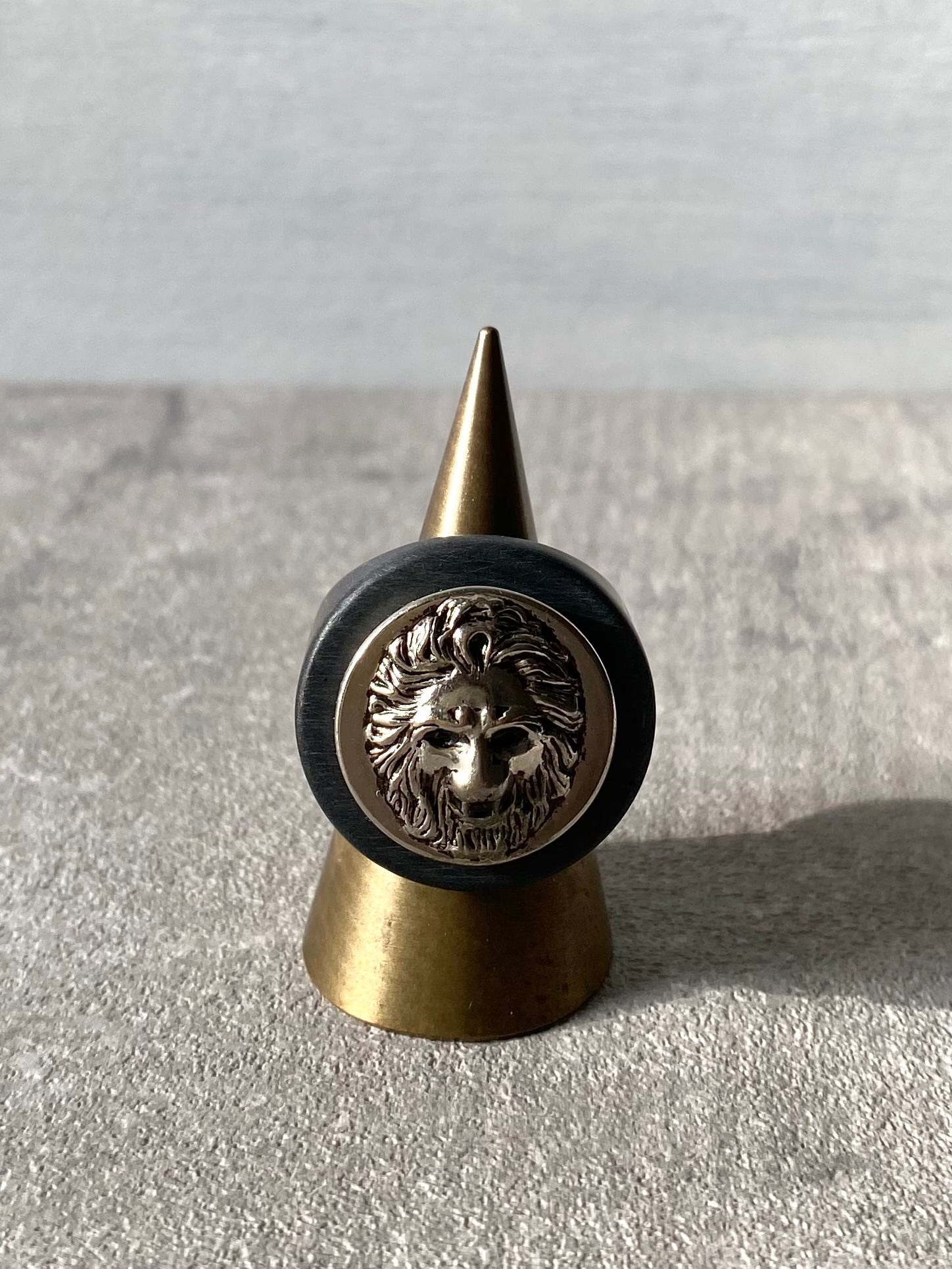 Upcycled lion black resin silver tone ring アップサイクル アクセサリー レトロ ライオン ブラック 樹脂 シルバー トーン リング